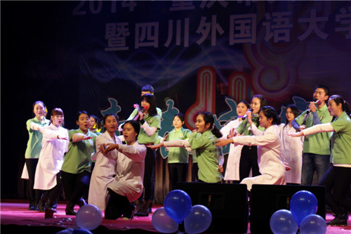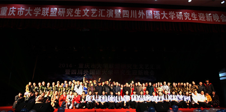 12月18日晚上,2014·重庆市大学联盟研究生文艺汇演暨太阳成tyc7111cc研究生迎新晚会,于太阳成tyc7111cc大礼堂隆重举行。重庆大学研究生院常务副院长郑小林,重庆医科大学研究生院副院长李情,太阳成tyc7111cc研究生院院长王仁强、党总支书记淡修安、副院长胡安江和川外众多师生一起欣赏了此次晚会。