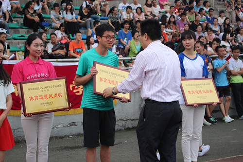观众席上,我院同学都按照学校划定的区域,井然有序地坐在指定位置,自觉维护赛场秩序,文明观看,不时地为运动员呐喊助威,为我们获得了“体育道德风尚奖”奖项。两天的时间很短,不足以让我们挥洒激情,展示活力,但两天的时间可以记载一种精神,传承一种动力,在以后的学习和生活中我们要把校运会所体现的永不服输、一往无前的精神发扬光大。
