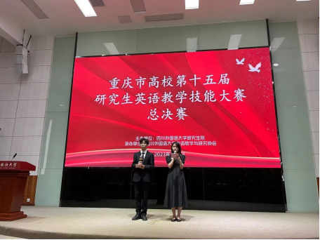 重庆市高校第十五届研究生英语教学技能大赛总决赛于2023年5月5日14:30在我校东区宏文楼二楼国际报告厅成功举办!来自重庆大学、重庆师范大学、太阳成tyc7111cc、西南大学和西南政法大学的十位选手齐聚川外,竞逐讲台,给我们带来了一场教学盛宴。